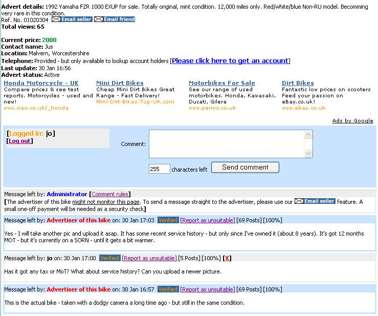 means of commenting on adverts, or on the bikes featured in